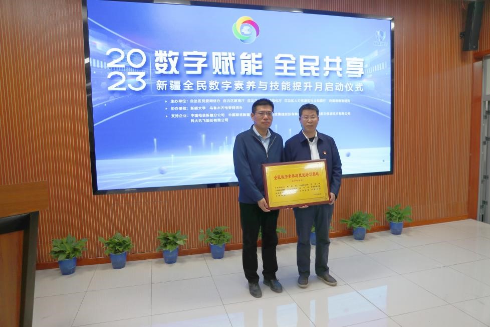 2023年4月27日,新疆2023年全民数字素养与技能提升月启动仪式在博达校区图书馆学术报告厅举行,大学党委副书记孟凡丽教授出席仪式并致辞,仪式上自治区党委网信办为信息科学与工程学院等3个国家级全民数字素养与技能培训基地授牌。
