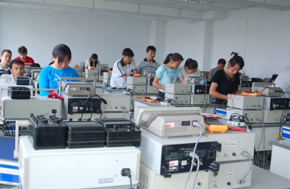 模拟电子线路实验室是专门为信息科学与工程学院开设电子技术与电子线路等技术基础课程而设立的一个学生进行实验的实验室。实验室于2003年进行了大规模的仪器设备更新,实验室在3#教学楼的402、407室,占地面积180平方米,两人一组,可以同时满足两个标准班的实验课。该室设备有:直流稳压电源40台;低频信号发生器40台;高频信号发生器40台;双踪示波器40台;交流毫伏计40台;高频交流毫伏计40台;数字万用表40台以及40台最新型的综合实验系统。该室每次实验可容纳80个学生(2人一组,共40组)的实践操作,是学生理论联系实际和提高实际技能的一个重要课堂。 此外,该室还配备了一些测试设备,也承担了课程设计与毕业设计任务,均能满足各教学任务的完成。