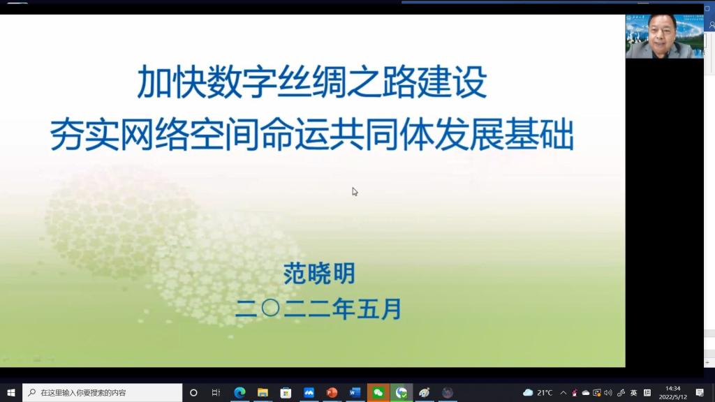 范晓明高工以《数字丝绸之路》为主题,分享了数字丝绸之路概况、数字丝绸之路天地一体化信息高速公路建设研究、数字丝绸之路核心枢纽建设研究、数字丝绸之路数字经济合作研究和数字丝绸之路数字生态建设研究等五个主要内容,最后提出了对加快数字丝绸之路建设的对策建议。
